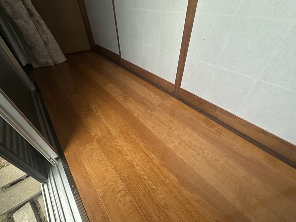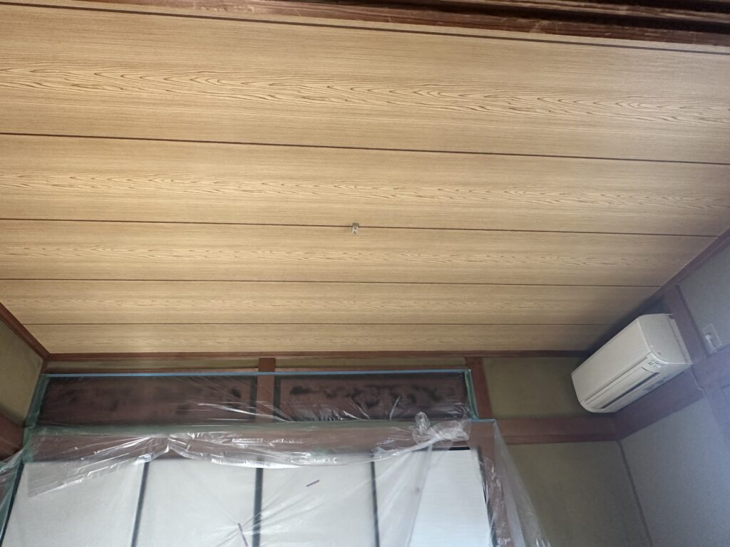 畳の入れ替えと天井の貼り替えと縁側の床張りを行いました